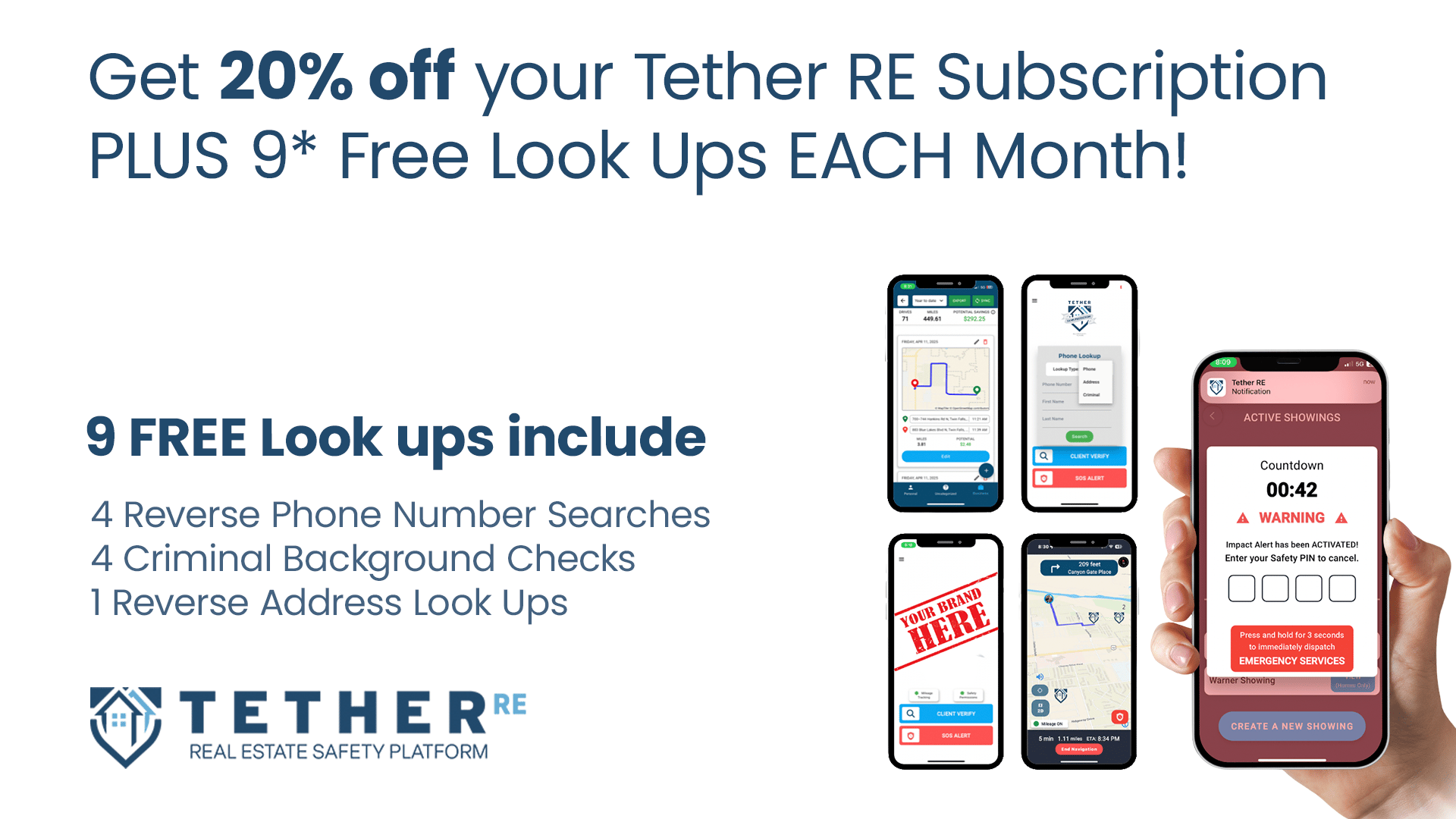 Tether RE is a personal safety platform designed specifically for real estate professionals. With 24/7 live monitoring, SOS alerts, struggle detection, proximity timers, and verified client screening tools, agents never have to work alone. Because the most important part of any deal is making it home safe.