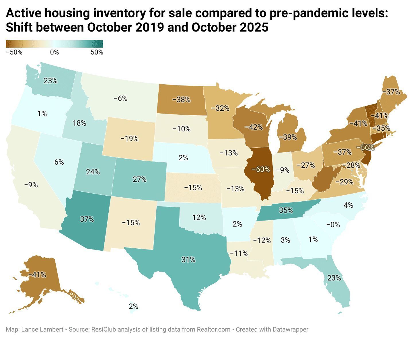 17 states are back above pre-pandemic 2019 housing inventory levels according to Realtor dot com data.
