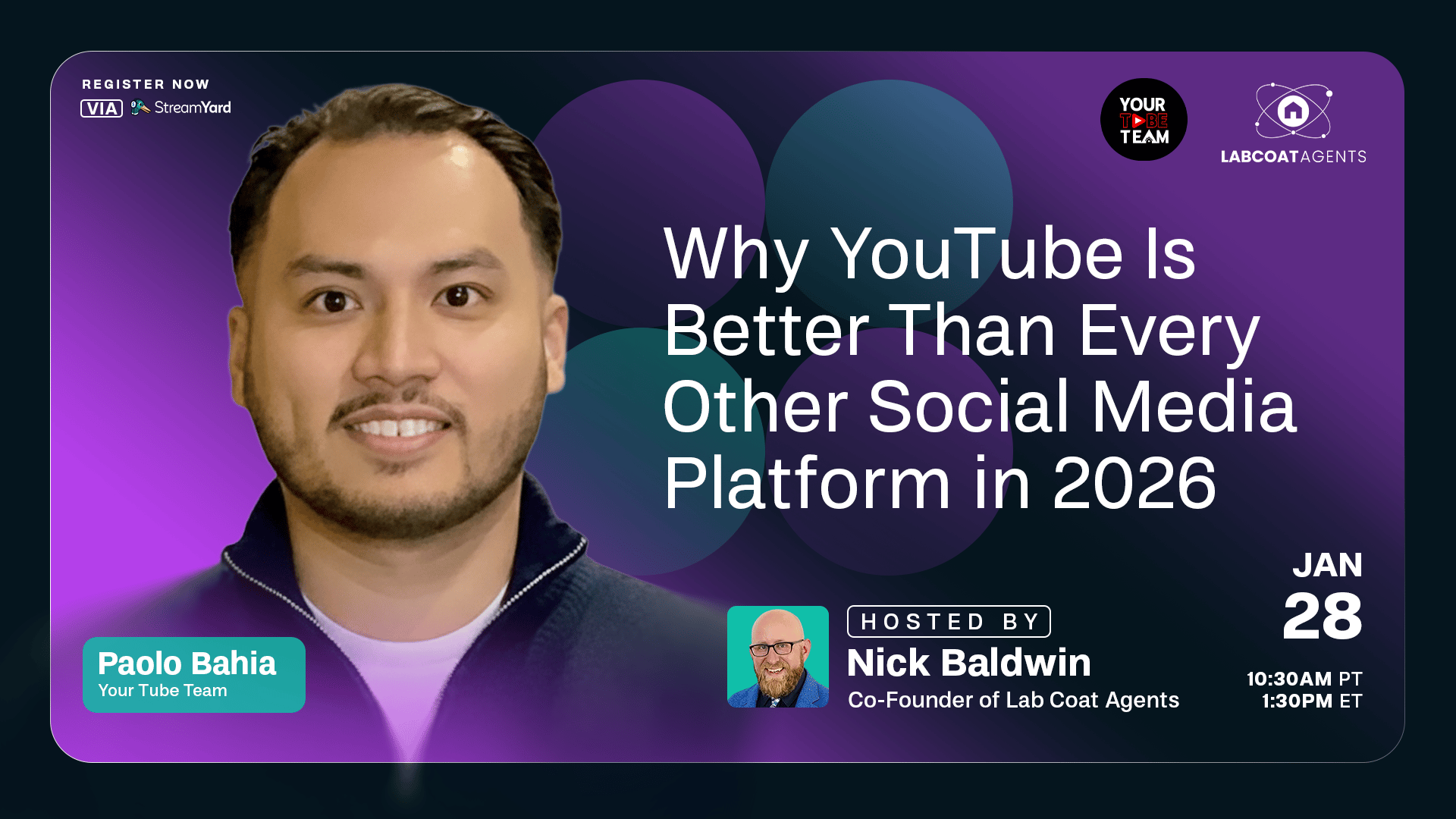 In this webinar, Paolo (Your Tube Team) breaks down why YouTube is the #1 platform for real estate agents heading into 2026—higher-trust audiences, better lead quality, and content that keeps working for years.