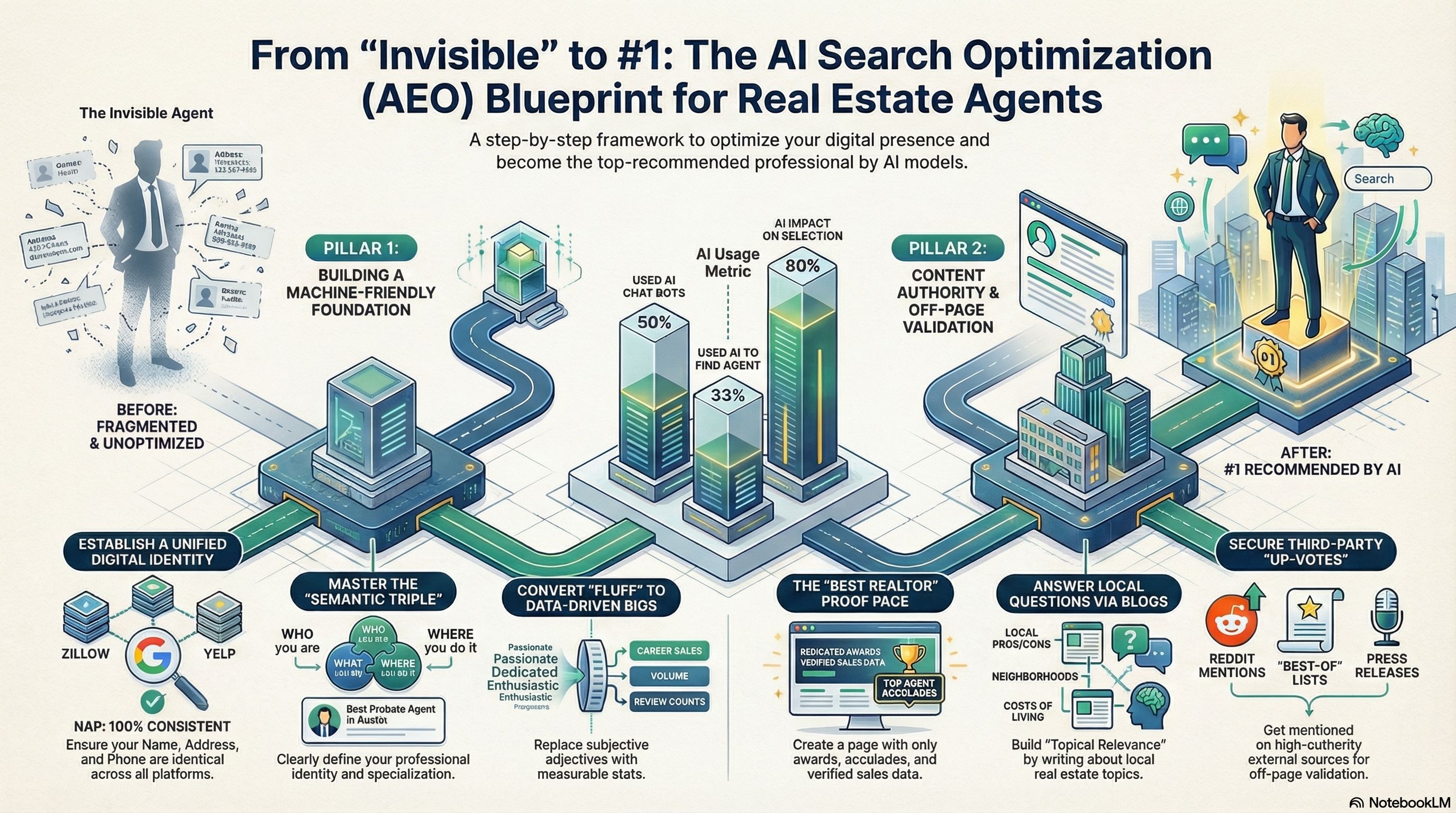 Learn how agents can show up in AI search results (ChatGPT, Google AI Overviews, Gemini, Perplexity) by building clean data + real authority—not just relying on production numbers.